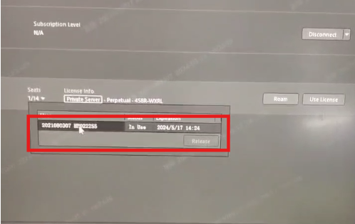 1. 許可證狀態(tài)顯示異常:客戶端成功連接服務器后,許可證列表可見,但選擇"Use License"操作后界面無響應,軟件功能模塊呈現(xiàn)灰色禁用狀態(tài),與未激活前界面無差異。
