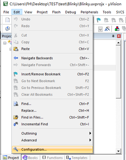 1.?在菜單中點擊 “Edit”-->“Configuration”。
