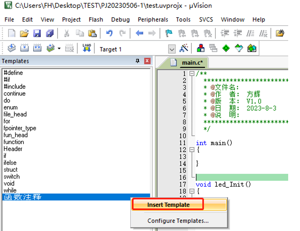 在書寫程序的時候需要對函數(shù)進行一些注釋,每次拷貝都需要來回切換界面,使用模板就可以方便地添加函數(shù)注釋。