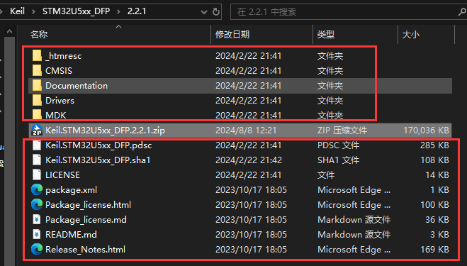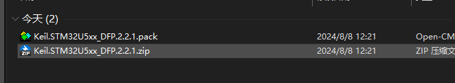 1)、將下載下來的芯片包資源后綴名,由".pack"改為".zip"并解壓,如下圖所示
