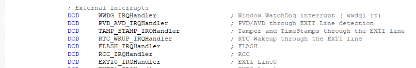然后從WWDG_IRQHandler到WAKEUP_PIN_IRQHandler就是外設中斷的函數指針。
