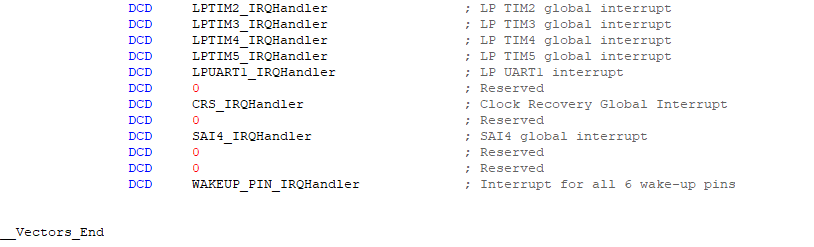 最后,__Vectors_End表示中斷向量表結束。
