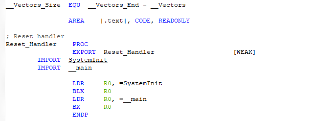 Reset_Handler PROC:表示復位中斷服務的入口