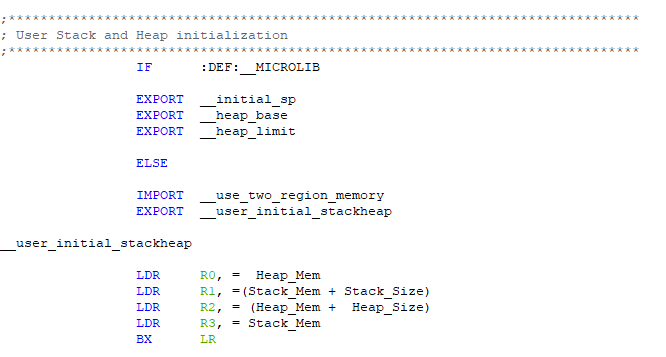 AREA HEAP, NOINIT, READWRITE, ALIGN=3:HEAP為段名,可以隨意命名;NOINIT表示不初始化;READWRITE表示可讀可寫;ALIGN=3表示按照堆空間按照2^3字節對齊