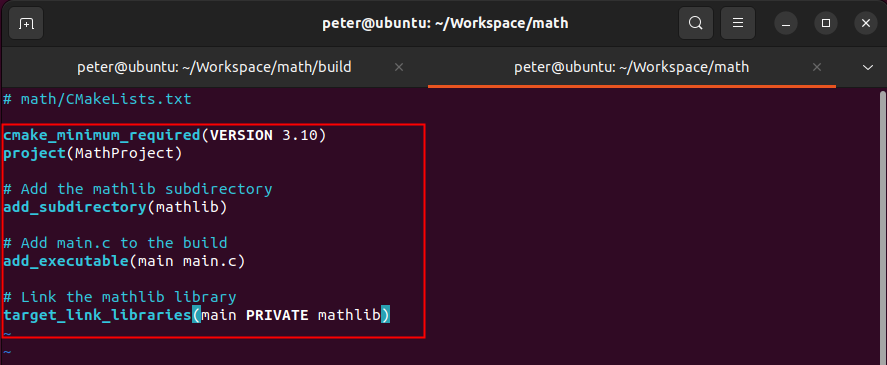 1. 在“math”目錄下,創(chuàng)建一個CMakeLists.txt文件,內容如圖3-2所示: