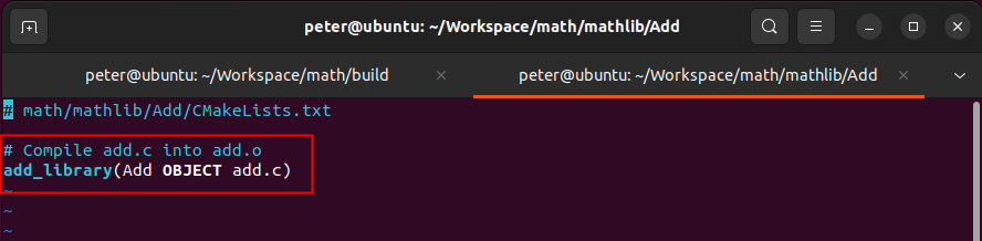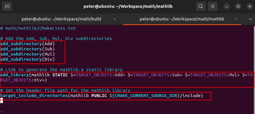 2. 在“mathlib”目錄下,創(chuàng)建一個CMakeLists.txt文件,內容如圖3-3所示: