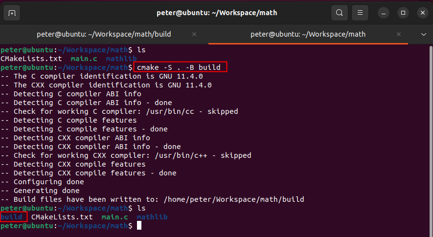 5. 在“math”目錄下,運行“cmake -S . -B build”,開始生成Makefile文件,如圖3-5所示: