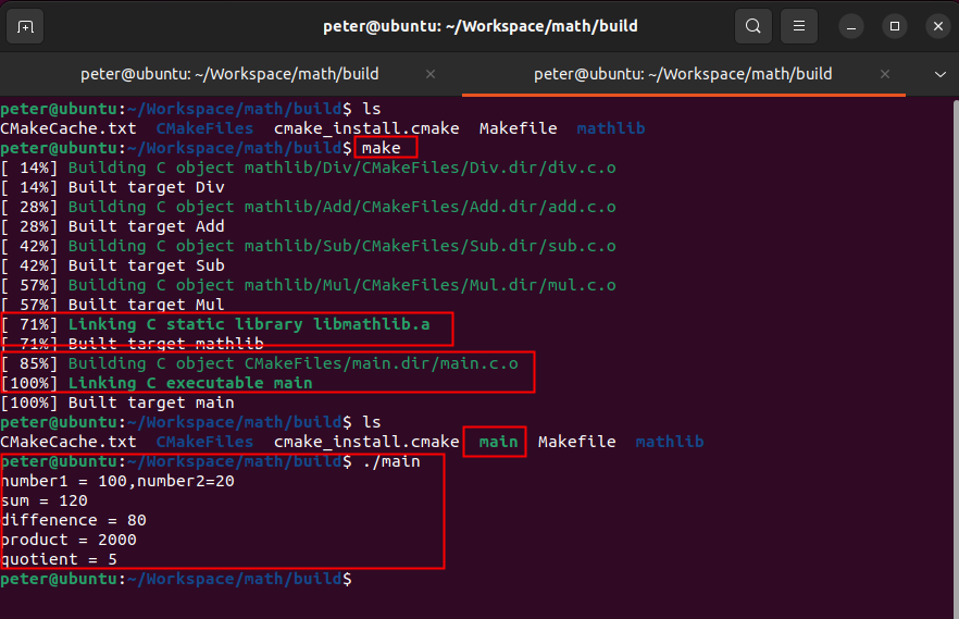 進入在“build”目錄下,運行make,并運行執(zhí)行文件:main,如圖4-1所示: