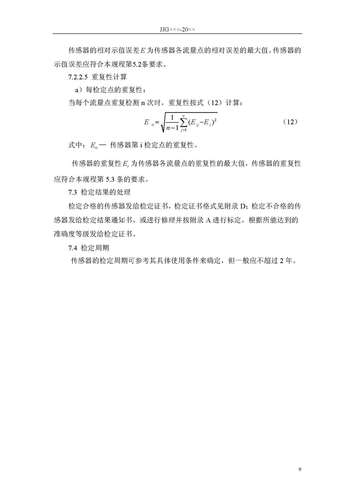 《氣體層流流量傳感器檢定規程》JJG7 36- 20XX