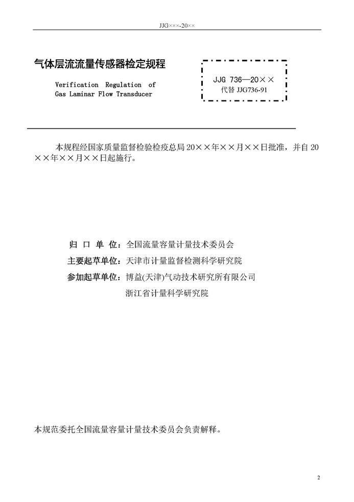 《氣體層流流量傳感器檢定規(guī)程》JJG7 36- 20XX
