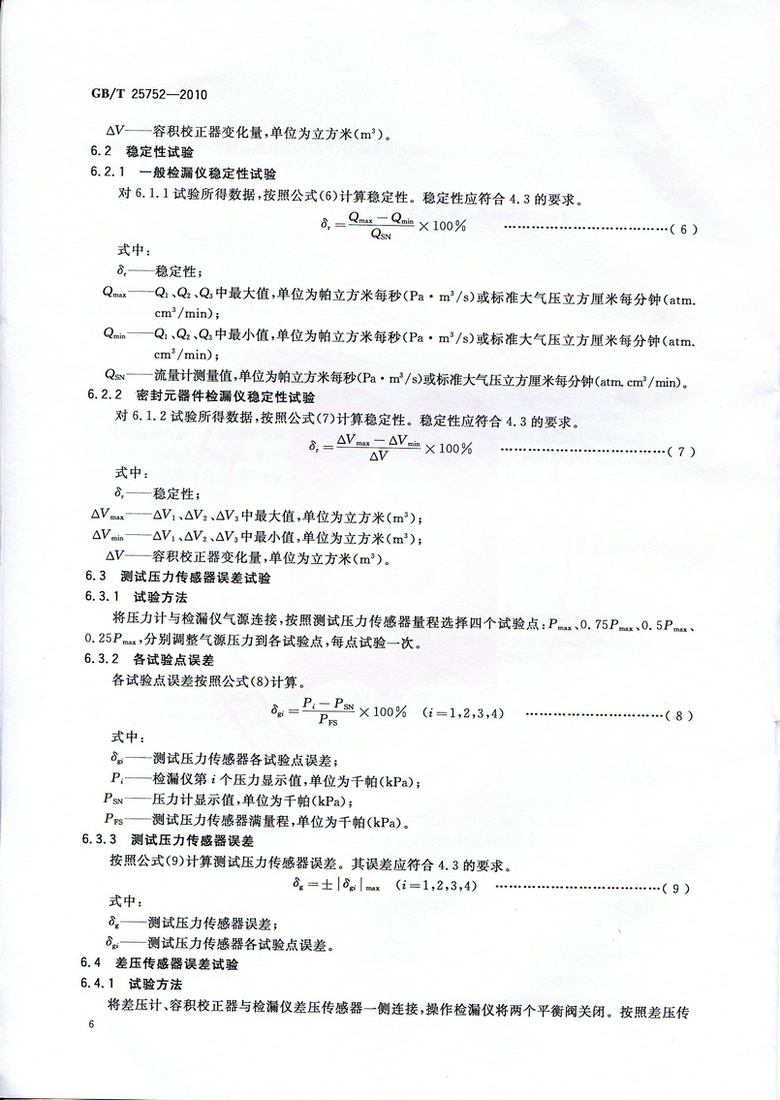 《差壓式氣密檢漏儀》GB/T 25752—2010