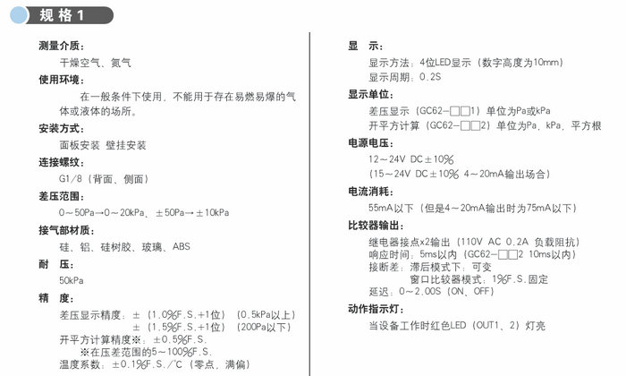 耐壓倍數高,最小量程50Pa;