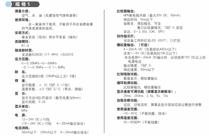 本產品采用了蒸發型半導體應變片,集成了數字顯示,變送器和開關三種功能,還配備了循環檢測,比例縮放檢測等職能化功能