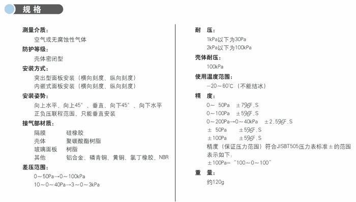 本產品可測量極低的壓力,可以檢測出由于空調過濾器的壓損,還可用于流量計及分壓計上。