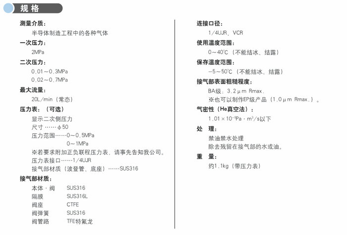 為各種半導(dǎo)體供給系統(tǒng)及制造設(shè)備專門開發(fā)制造的小型調(diào)壓閥。