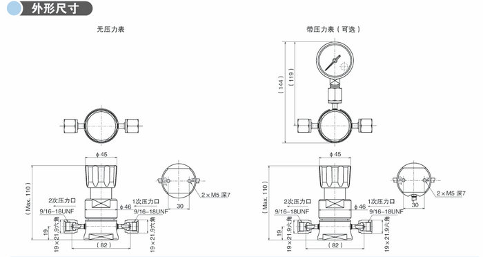 帶有二次側(cè)壓力監(jiān)測用壓力表。
