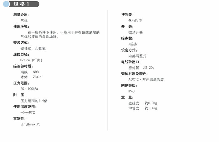 應(yīng)用于氣體壓力發(fā)生器輸出壓力為20-100kPa的場(chǎng)合,是一種高性能的壓力開關(guān)