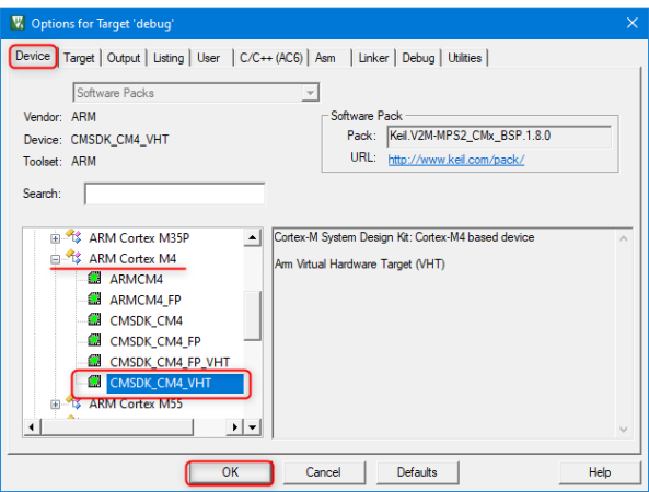 注:虛擬硬件模型 可以在MDK 安裝目錄中的/ARM/VHT/文件夾中找到,例如C:/Keil_v5/ARM/VHT/.