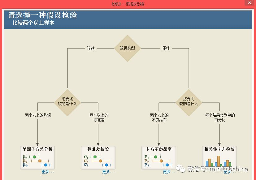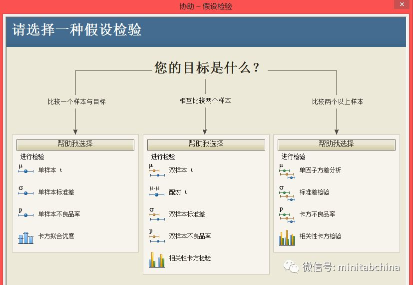 如果您無法確定要用于分析數(shù)據(jù)的檢驗,請讓“協(xié)助”引導您做出正確的選擇。
