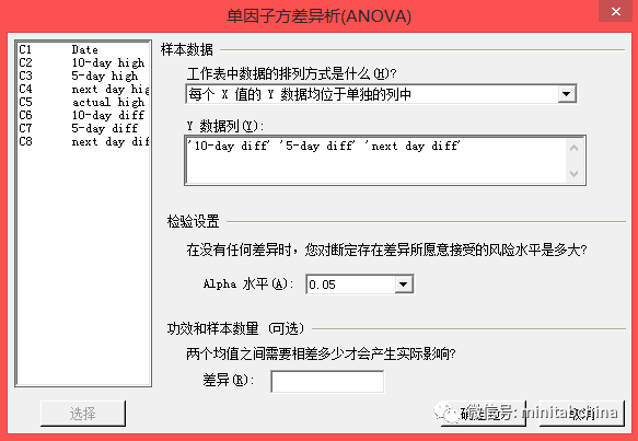 如果您選擇“請幫我選擇”,則可以按照決策樹做出正確選擇。由于此溫度數(shù)據(jù)是連續(xù)的,而且您需要比較兩個以上的樣本,因此決策樹會引導您使用單因子方差分析。