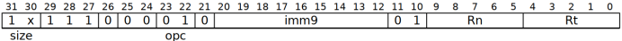 例如立即數加載指令格式:LDR <Xt> , [ <Xn|SP> ], # <simm>