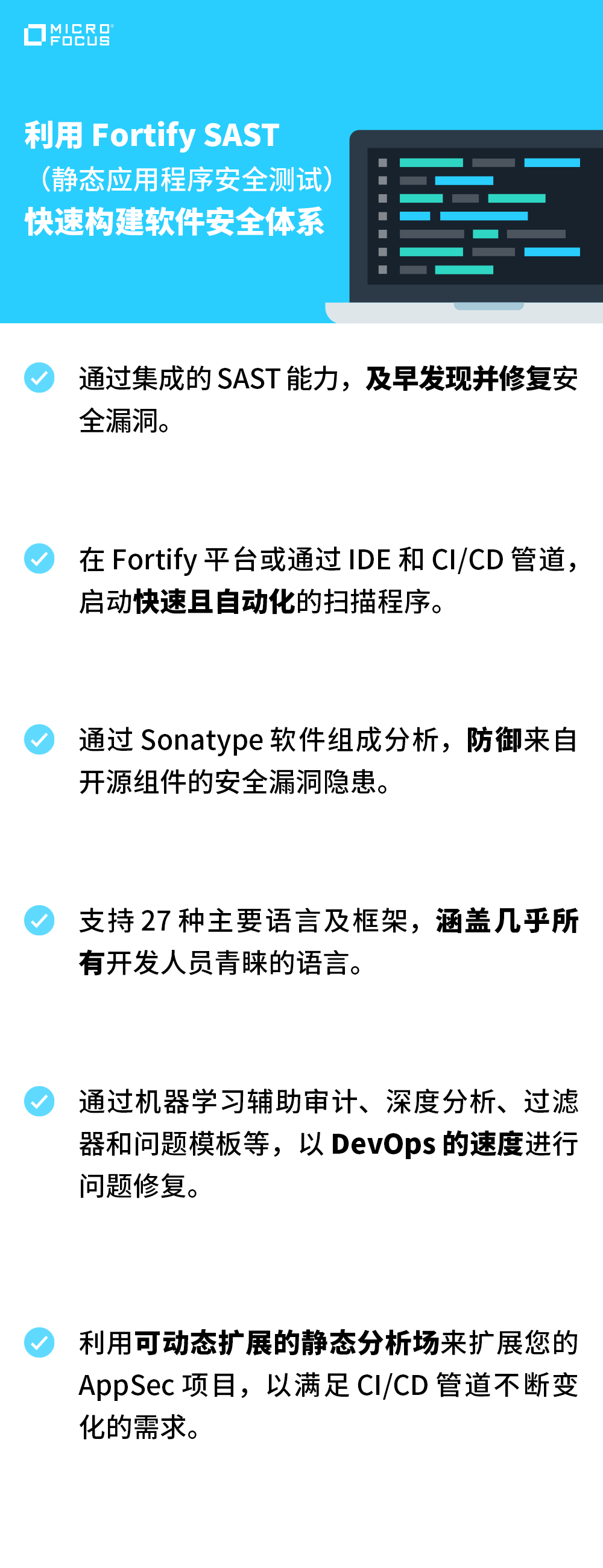 除此外,業(yè)界領(lǐng)先的企業(yè)級(jí)軟件安全組合——Fortify 安全解決方案還有這些值得您了解 ...