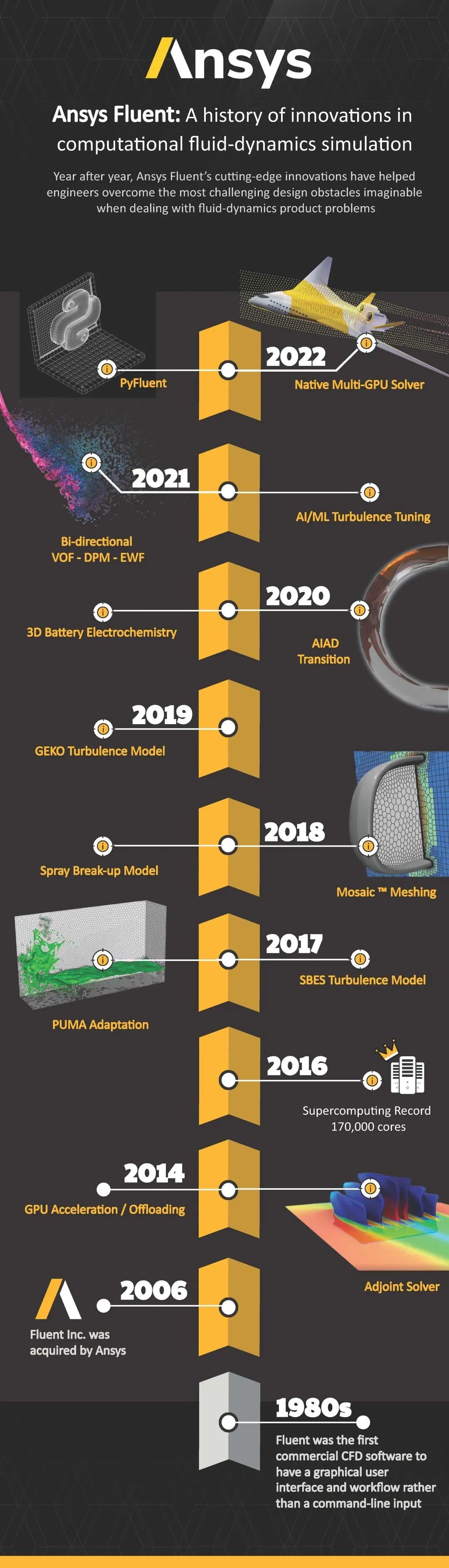2006年5月,Ansys收購Fluent公司。自加入Ansys大家庭以來,我們一直在不斷發展Fluent的性能、準確性和效率,并提供領先的創新技術,以幫助工程師在處理流體動力學問題時克服極具挑戰性的設計難題。