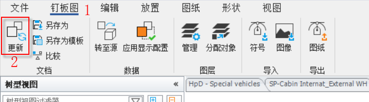 打開更新元件對應的釘板圖,菜單欄【釘板圖】-【更新】,更新釘板圖,如下圖。