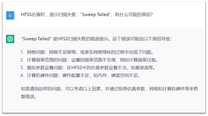 本次評估到此結束,以上是筆者初試ChatGPT的一些體驗,供參考。這也讓我不禁想起ChatGPT曾經說過:AI will not replace you. A person who's using AI will replace you,希望大家可以在實際工作學習中嘗試探索更多電磁仿真領域的不同解,期待廣大用戶發掘出ChatGPT在電磁場仿真方面的妙招。