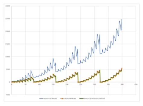 該圖顯示了Ansys Maxwell模型生成的結果準確度遠高于Ansys Motor-CAD模型。然而,如果Motor-CAD模型與融合殘差模型結合,性能可媲美完整的Maxwell模型