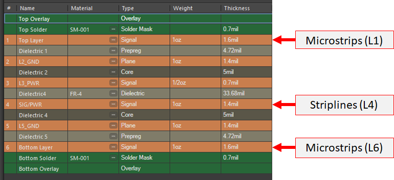 眾所周知,微帶線、帶狀線或共面布置的層厚會(huì)影響數(shù)字或模擬信號(hào)的損耗。明智地選擇需要支持高速/高頻信號(hào)的信號(hào)層中的電介質(zhì)厚度可以解決上述損耗的一個(gè)方面。此外,為外露走線選擇合適的材料和電鍍材料可以降低高頻損耗,例如在需要精確信號(hào)完整性的毫米波設(shè)計(jì)中。總之,這些步驟有助于確保信號(hào)在路由到互連末端時(shí)經(jīng)歷低損耗。