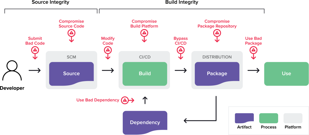 新一代的軟件供應鏈安全解決方案,遠遠超越了當前市面上常見的 CVE 掃描。它主要包括:偵查攻擊載體,比如侵入開發源代碼的惡意代碼;確保代碼在 SDLC 管道中流動的完整性;驅動全部部署及操作的基礎設施安全;以及在軟件運行時與之互動的一系列第三方代碼、組件和接口。同樣重要的是,無論您希望建立什么樣的應用,它都能幫助您主動找到或選擇最佳且最安全的開源代碼。