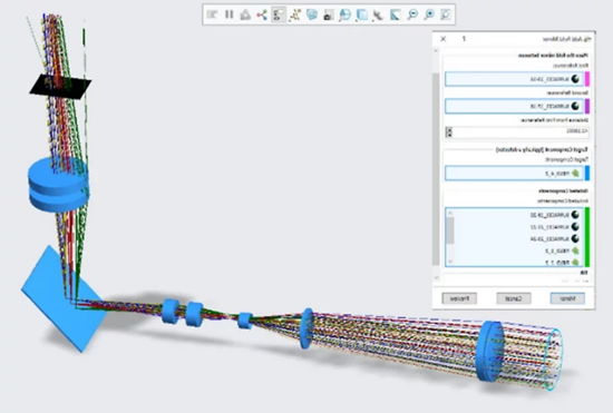 反射鏡通常用于光機械設計,使用戶能夠在不影響設計焦距的情況下沿光程進行反射,從而使光學設計適應嚴格的機械空間限制。OpticsBuilder中原有的反射鏡仿真工具已經過全面修改,并且所有已知問題都已得到解決。該工具的功能已非常強大,并且為將來的其他功能做好了準備。