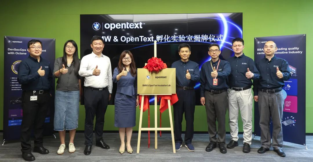 2023 年 6 月 16 日,OpenText與華晨寶馬汽車有限公司(以下簡稱“華晨寶馬”)聯合創建的「BMW & OpenText 孵化實驗室」(下稱“實驗室”)在 OpenText 上海研發中心(下稱“中心”)正式揭牌,拉開雙方跨產品、多實例、多領域價值共創的序幕。
