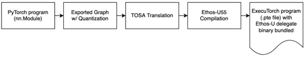 近期,我們發布了 ExecuTorch 的 TOSA 編譯流程和運行時代理[6],并為 Ethos-U55 提供了原型支持,使圖形能從 PyTorch python 環境直接導出到支持 Ethos-U 的平臺,如 Arm Corstone?-300[7]。?