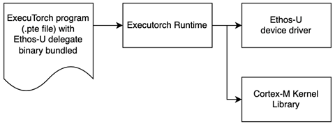 2)設備上的 ExecuTorch 運行時可將工作分派給 Cortex-M 和 Ethos-U。