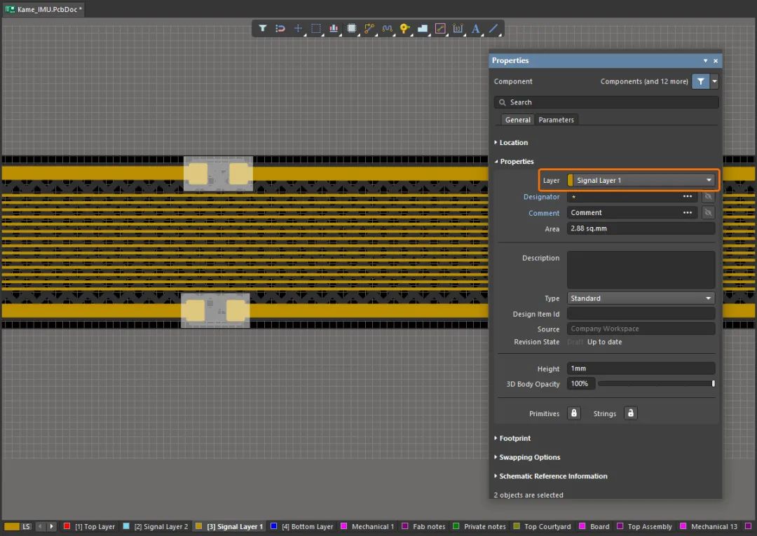 某些元件放置在 PCB 的中間層上
