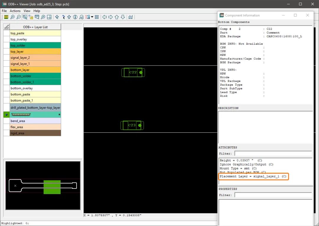 當(dāng)將此 PCB 導(dǎo)出為 ODB++ v8.1 格式時(shí),這些元件會(huì)出現(xiàn)在導(dǎo)出的數(shù)據(jù)中,并帶有相應(yīng)的放置層屬性。