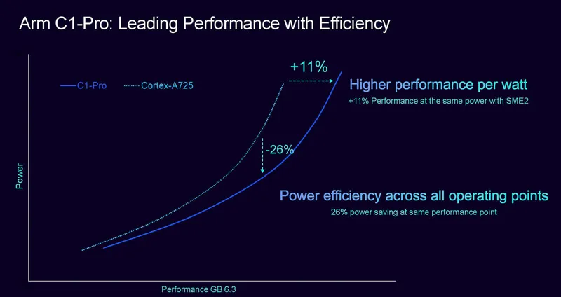 C1-Pro是A725的升級(jí),峰值功耗差異不大的情況下,性能提升了11,相同性能下功耗則降低了26。