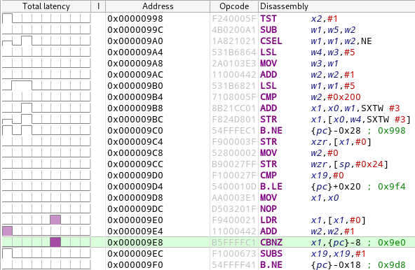 反匯編顯示基于每條指令的計數器變化,比如可以顯示每條指令的延遲。