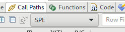 調用路徑視圖顯示了按照進程和線程顯示的調用棧。因為SPE只是采樣PC而不是調用棧,每個進程中的函數只是平鋪展開。默認情況,本視圖只顯示傳統的周期性采樣數據,為了顯示SPE數據,從下拉菜單中選擇SPE。