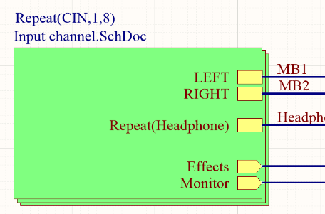 - 在原理圖中對Sheet Symbol使用重復性命令就可以完成多通道設計