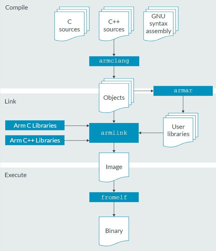 ● armlink:功能豐富的專用嵌入式鏈接器,將對(duì)象和庫(kù)結(jié)合起來(lái)生成可執(zhí)行文件