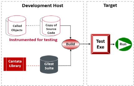 在Cantata Hybrid下的Google Test可以在任何目標(biāo)平臺上運(yùn)行,其中已經(jīng)為Cantata提供了針對特定目標(biāo)的部署(模擬器、模擬器或物理目標(biāo)板)。當(dāng)測試exe在目標(biāo)上運(yùn)行時,功能和代碼覆蓋率測試結(jié)果被定向回主機(jī)以生成測試報告。