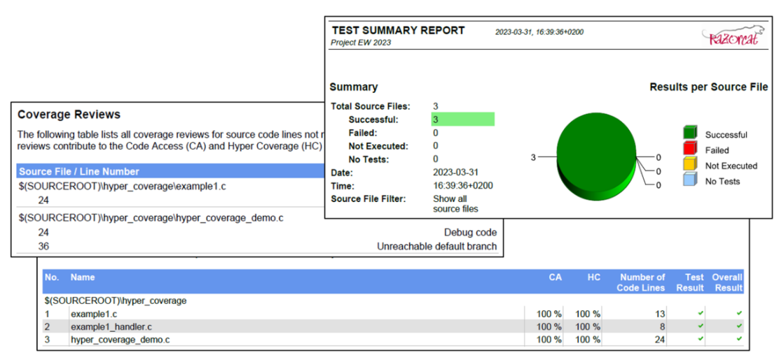TESSY 提供不同類型的自動創建且設計精良的 PDF 測試報告。這些報告總結了當前測試項目狀態的測試執行覆蓋率和測試摘要,最初是概述,最后是測試細節。這樣,您可以創建報告,例如映射您的需求、V&V 矩陣和測試計劃覆蓋率(=計劃需求覆蓋率)。