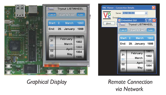 圖形界面是一個全功能的圖形界面,使得用戶在嵌入式應用中添加界面接口變得可能。支持大量的顯示,包括快速的GUI開發工具: