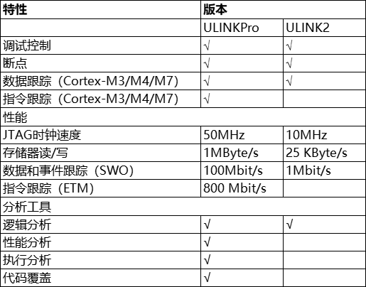 MDK軟件支持硬件調試和Flash編程,以下是支持的調試工具:
