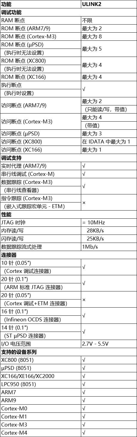 ULINK2 可用于: