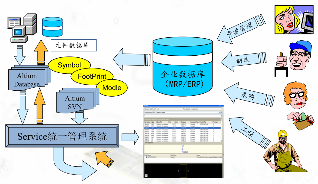企業(yè)信息數(shù)據(jù)庫使用OLE DB特性,實現(xiàn)在關(guān)系引擎和存儲引擎間的數(shù)據(jù)通訊。所有客戶端的數(shù)據(jù)庫訪問操作均可由存儲引擎從基表中執(zhí)行簡單的OLE DB集合命令。Altium的數(shù)據(jù)庫關(guān)聯(lián)庫功能可以支持客戶端通過OLE DB直接訪問企業(yè)數(shù)據(jù)庫(如SQL Server或Oracle);同時,結(jié)合版本控制系統(tǒng)實現(xiàn)對元器件模型的檢索和調(diào)用。
