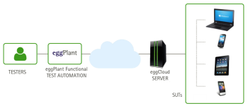 由于Eggplant Automation Cloud僅轉發 TCP/IP 連接,不與測試數據流交互,因此通過Eggplant Automation Cloud連接不需要對現有測試框架進行任何更改。測試客戶端、SUT 或移動設備上不需要額外的軟件。